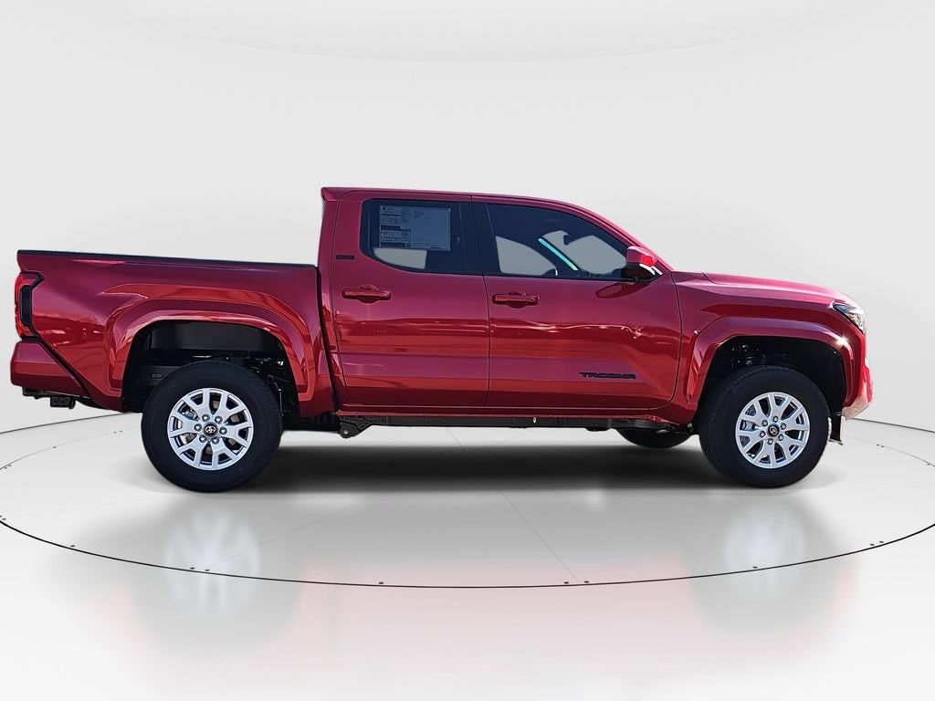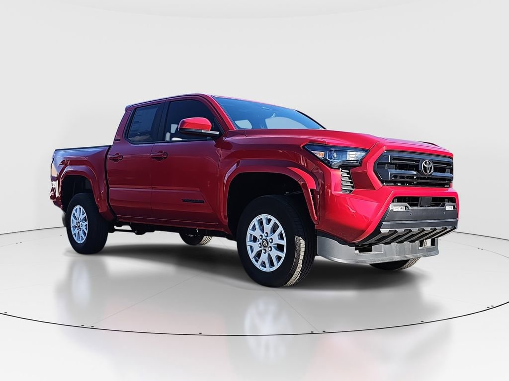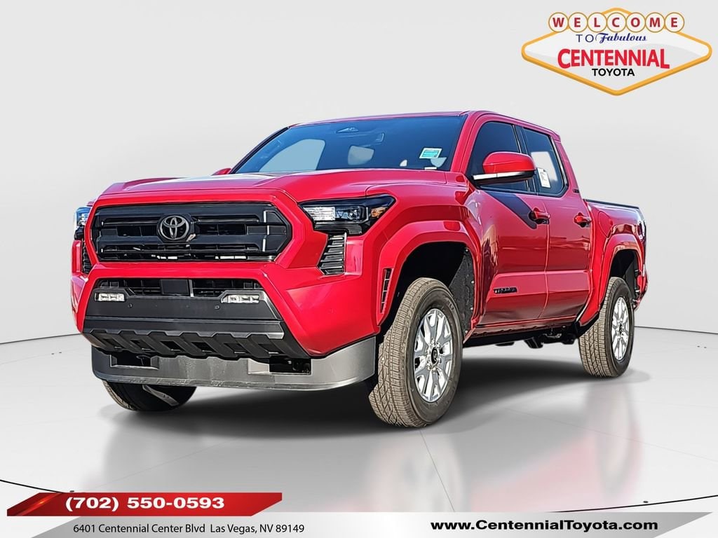 ** CALL (702) 527-3684 **Red 2025 Toyota Tacoma SR5 RWD 8-Speed Automatic 2.4L 4-CylinderSR5 Upgrade Heat, 3.583 Axle Ratio, 4-Wheel Disc Brakes, 6 Speakers, ABS brakes, Air Conditioning, Alloy wheels, AM/FM radio: SiriusXM, Anti-whiplash front head restraints, Apple CarPlay/Android Auto, Auto High-beam Headlights, Auto-dimming Rear-View mirror, Black Badge Overlay (TMS), Black Tailgate Insert (TMS), Brake assist, Bumpers: body-color, Carpeted Floor Mats (TMS), Driver door bin, Dual front impact airbags, Dual front side impact airbags, Electronic Stability Control, Emergency communication system: Safety Connect (1-year trial), Exterior Parking Camera Rear, Fabric Seat Trim, Four wheel independent suspension, Front anti-roll bar, Front Bucket Seats, Front Center Armrest, Front fog lights, Front reading lights, Fully automatic headlights, Heated door mirrors, Illuminated entry, Knee airbag, Low tire pressure warning, Occupant sensing airbag, Outside temperature display, Overhead airbag, Overhead console, Panic alarm, Passenger door bin, Power door mirrors, Power steering, Power windows, Radio: 8" Toyota Audio Multimedia, Rear step bumper, Rear window defroster, Remote keyless entry, Speed control, Speed-sensing steering, Split folding rear seat, Steering wheel mounted audio controls, Tachometer, Telescoping steering wheel, Tilt steering wheel, Traction control, Trip computer, Variably intermittent wipers, and Wheels: 17" Styled Alloy.21/26 City/Highway MPG