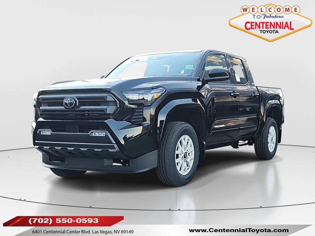 ** CALL (702) 527-3684 **Black 2025 Toyota Tacoma SR5 4WD 8-Speed Automatic 2.4L 4-Cylinder3.583 Axle Ratio, 4-Wheel Disc Brakes, 6 Speakers, ABS brakes, Air Conditioning, All Weather Floor Liners (TMS), Alloy wheels, AM/FM radio: SiriusXM, Anti-whiplash front head restraints, Apple CarPlay/Android Auto, Auto High-beam Headlights, Auto-dimming Rear-View mirror, Bed Step (TMS), Body Side Molding (TMS), Brake assist, Bumpers: body-color, Chrome Exhaust Tip (TMS), Driver door bin, Dual front impact airbags, Dual front side impact airbags, Electronic Stability Control, Emergency communication system: Safety Connect (1-year trial), Exterior Parking Camera Rear, Fabric Seat Trim, Four wheel independent suspension, Front anti-roll bar, Front Bucket Seats, Front Center Armrest, Front fog lights, Front reading lights, Fully automatic headlights, Gunmetal Tailgate Insert (TMS), Heated door mirrors, Illuminated entry, Illuminated Front Emblem Dark Chrome (TMS), JBL Premium Audio, Knee airbag, Low tire pressure warning, Mudguards (TMS), Occupant sensing airbag, Outside temperature display, Overhead airbag, Overhead console, Panic alarm, Passenger door bin, Power door mirrors, Power steering, Power windows, Radio: 8" Toyota Audio Multimedia, Rear step bumper, Rear window defroster, Remote keyless entry, Speed control, Speed-sensing steering, Split folding rear seat, Spray-On Bed Liner (TMS), Steering wheel mounted audio controls, Tachometer, Telescoping steering wheel, Tilt steering wheel, Traction control, Trip computer, Variably intermittent wipers, and Wheels: 17" Styled Alloy.