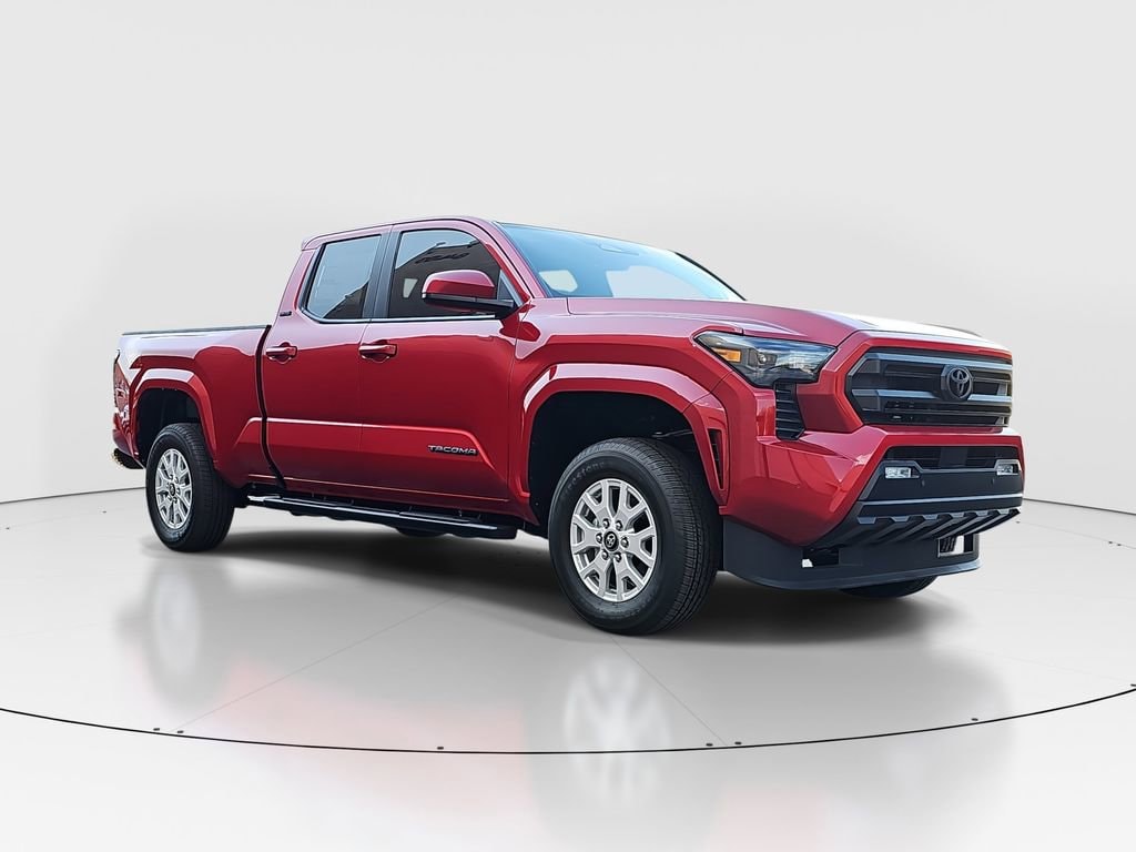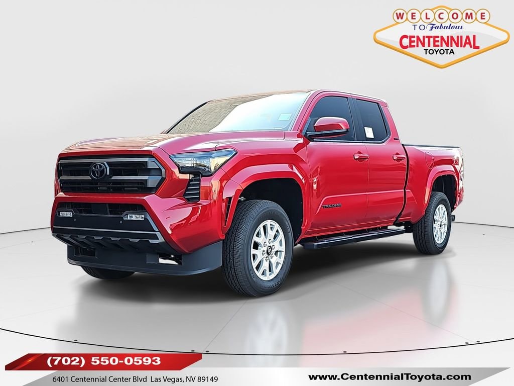 ** CALL (702) 527-3684 **Red 2025 Toyota Tacoma SR5 4WD 8-Speed Automatic 2.4L 4-Cylinder3.583 Axle Ratio, 4-Wheel Disc Brakes, 6 Speakers, ABS brakes, Air Conditioning, Alloy wheels, AM/FM radio: SiriusXM, Anti-whiplash front head restraints, Apple CarPlay/Android Auto, Auto High-beam Headlights, Auto-dimming Rear-View mirror, Brake assist, Bumpers: body-color, Driver door bin, Dual front impact airbags, Dual front side impact airbags, Electronic Stability Control, Emergency communication system: Safety Connect (1-year trial), Exterior Parking Camera Rear, Fabric Seat Trim, Four wheel independent suspension, Front anti-roll bar, Front Bucket Seats, Front Center Armrest, Front fog lights, Front reading lights, Fully automatic headlights, Heated door mirrors, Illuminated entry, JBL Premium Audio, Knee airbag, Low tire pressure warning, Occupant sensing airbag, Outside temperature display, Overhead airbag, Overhead console, Panic alarm, Passenger door bin, Power door mirrors, Power steering, Power windows, Radio: 8" Toyota Audio Multimedia, Rear step bumper, Rear window defroster, Remote keyless entry, Speed control, Speed-sensing steering, Split folding rear seat, Steering wheel mounted audio controls, Tachometer, Telescoping steering wheel, Tilt steering wheel, Traction control, Trip computer, Variably intermittent wipers, and Wheels: 17" Styled Alloy.