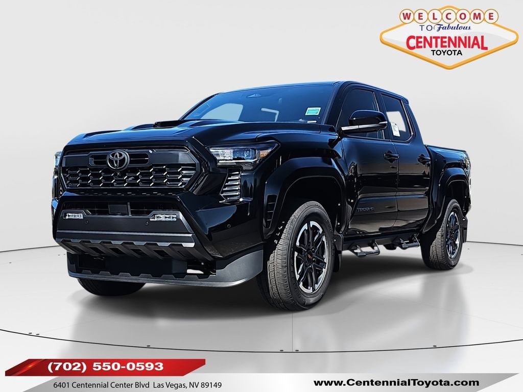 ** CALL (702) 527-3684 **Black 2025 Toyota Tacoma TRD Sport 4WD 8-Speed Automatic 2.4L 4-CylinderTRD Sport Premium Package (3D Panoramic View Monitor, JBL Premium Audio, and Radio: 14" Toyota Audio Multimedia w/TRD Premium), 3.583 Axle Ratio, 4-Wheel Disc Brakes, 6 Speakers, ABS brakes, Air Conditioning, All Weather Floor Liners (TMS), Alloy wheels, AM/FM radio: SiriusXM, Anti-whiplash front head restraints, Apple CarPlay/Android Auto, Auto High-beam Headlights, Auto-dimming Rear-View mirror, Automatic temperature control, Black Badge Overlay (TMS), Black Chrome Exhaust Tip (TMS), Black Tailgate Insert (TMS), Brake assist, Bumpers: body-color, Driver door bin, Driver vanity mirror, Dual front impact airbags, Dual front side impact airbags, Electronic Stability Control, Emergency communication system: Safety Connect (1-year trial), Exterior Parking Camera Rear, Fabric Seat Trim, Four wheel independent suspension, Front anti-roll bar, Front Bucket Seats, Front Center Armrest, Front fog lights, Front reading lights, Fully automatic headlights, Heated door mirrors, Illuminated entry, Knee airbag, Leather Shift Knob, Leather steering wheel, Low tire pressure warning, Mudguards (TMS), Occupant sensing airbag, Outside temperature display, Overhead airbag, Overhead console, Panic alarm, Passenger door bin, Passenger vanity mirror, Power door mirrors, Power steering, Power windows, Predator Step (TMS), Radio: 8" Toyota Audio Multimedia, Rear step bumper, Rear window defroster, Remote keyless entry, Security system, SofTex Seat Trim, Speed control, Speed-sensing steering, Split folding rear seat, Spray-On Bed Liner (TMS), Steering wheel mounted audio controls, Tachometer, Telescoping steering wheel, Tilt steering wheel, Traction control, Trip computer, Turn signal indicator mirrors, Variably intermittent wipers, and Wheels: 18" TRD Sport Alloy.