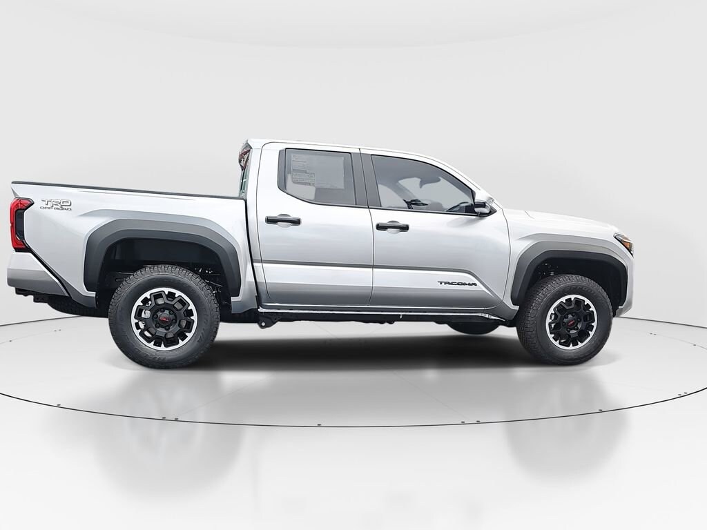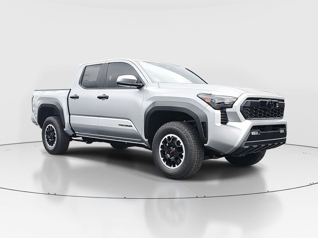 ** CALL (702) 527-3684 **Silver 2026 Toyota Tacoma TRD Off-Road 4WD 8-Speed Automatic 2.4L 4-CylinderTRD Off Road Upgrade Package (8-Way Power Driver and Passenger Seat Adjusters, Integrated Trailer Brake Controller, JBL Premium Audio, Power Horizontal Rear Window, Pre-Wire Accommodation (bed Power Port), and Smart Key w/Digital Key Technology), 18" Wheels, 3.583 Axle Ratio, 4-Wheel Disc Brakes, 6 Speakers, ABS brakes, Air Conditioning, Alloy wheels, AM/FM radio: SiriusXM, Anti-whiplash front head restraints, Apple CarPlay/Android Auto, Auto High-beam Headlights, Auto-dimming Rear-View mirror, Automatic temperature control, Brake assist, Bumpers: body-color, Driver door bin, Driver vanity mirror, Dual front impact airbags, Dual front side impact airbags, Electronic Stability Control, Emergency communication system: Safety Connect (up to 10-year trial subscription), Exterior Parking Camera Rear, Fabric Seat Trim, Four wheel independent suspension, Front anti-roll bar, Front Bucket Seats, Front Center Armrest, Front fog lights, Front reading lights, Fully automatic headlights, Heated door mirrors, Illuminated entry, Knee airbag, Leather Shift Knob, Leather steering wheel, Low tire pressure warning, Moon Roof, Occupant sensing airbag, Outside temperature display, Overhead airbag, Overhead console, Panic alarm, Passenger door bin, Passenger vanity mirror, Power door mirrors, Power steering, Power windows, Radio: 8" Toyota Audio Multimedia, Rear step bumper, Rear window defroster, Remote keyless entry, Security system, SofTex Seat Trim, Speed control, Speed-sensing steering, Split folding rear seat, Spray-on Bed Liner, Steering wheel mounted audio controls, Tachometer, Telescoping steering wheel, Tilt steering wheel, Traction control, Trip computer, Turn signal indicator mirrors, and Variably intermittent wipers.Recent Arrival!