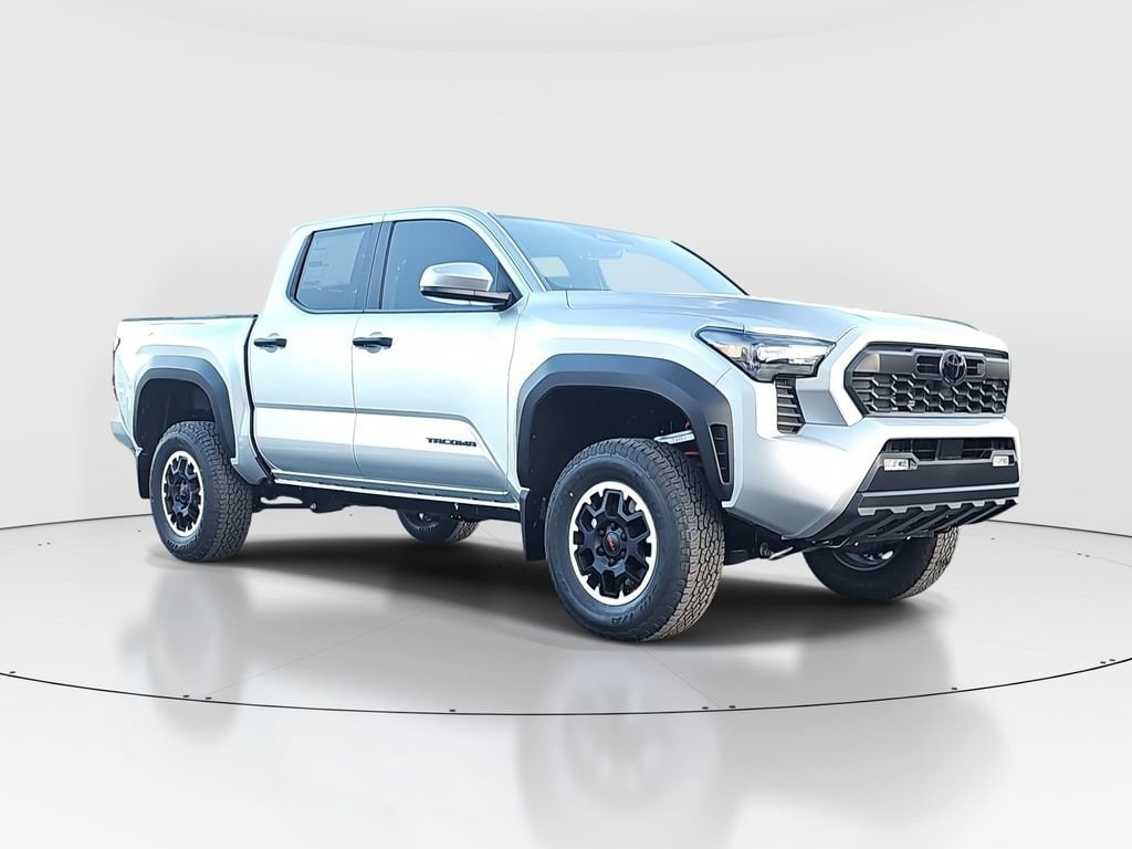 ** CALL (702) 527-3684 **Silver 2026 Toyota Tacoma TRD Off-Road 4WD 8-Speed Automatic 2.4L 4-CylinderTRD Off Road Package, 18" Wheels, 3.583 Axle Ratio, 4-Wheel Disc Brakes, 6 Speakers, ABS brakes, Air Conditioning, Alloy wheels, AM/FM radio: SiriusXM, Anti-whiplash front head restraints, Apple CarPlay/Android Auto, Auto High-beam Headlights, Auto-dimming Rear-View mirror, Automatic temperature control, Bed Step, Brake assist, Bumpers: body-color, Driver door bin, Driver vanity mirror, Dual front impact airbags, Dual front side impact airbags, Electronic Stability Control, Emergency communication system: Safety Connect (up to 10-year trial subscription), Exterior Parking Camera Rear, Fabric Seat Trim, Four wheel independent suspension, Front anti-roll bar, Front Bucket Seats, Front Center Armrest, Front fog lights, Front reading lights, Fully automatic headlights, Heated door mirrors, Heated Seats, Illuminated entry, JBL Premium Audio, Knee airbag, Leather Shift Knob, Leather steering wheel, Low tire pressure warning, Mudguards, Multimedia Glass Screen Protector, Occupant sensing airbag, Outside temperature display, Overhead airbag, Overhead console, Panic alarm, Passenger door bin, Passenger vanity mirror, Power door mirrors, Power steering, Power windows, Radio: 8" Toyota Audio Multimedia, Rear step bumper, Rear window defroster, Remote keyless entry, Security system, SofTex Seat Trim, Speed control, Speed-sensing steering, Split folding rear seat, Steering wheel mounted audio controls, Suspension Kit with 2.5" Lift, Tachometer, Telescoping steering wheel, Tilt steering wheel, Traction control, Trip computer, Turn signal indicator mirrors, and Variably intermittent wipers.Recent Arrival!