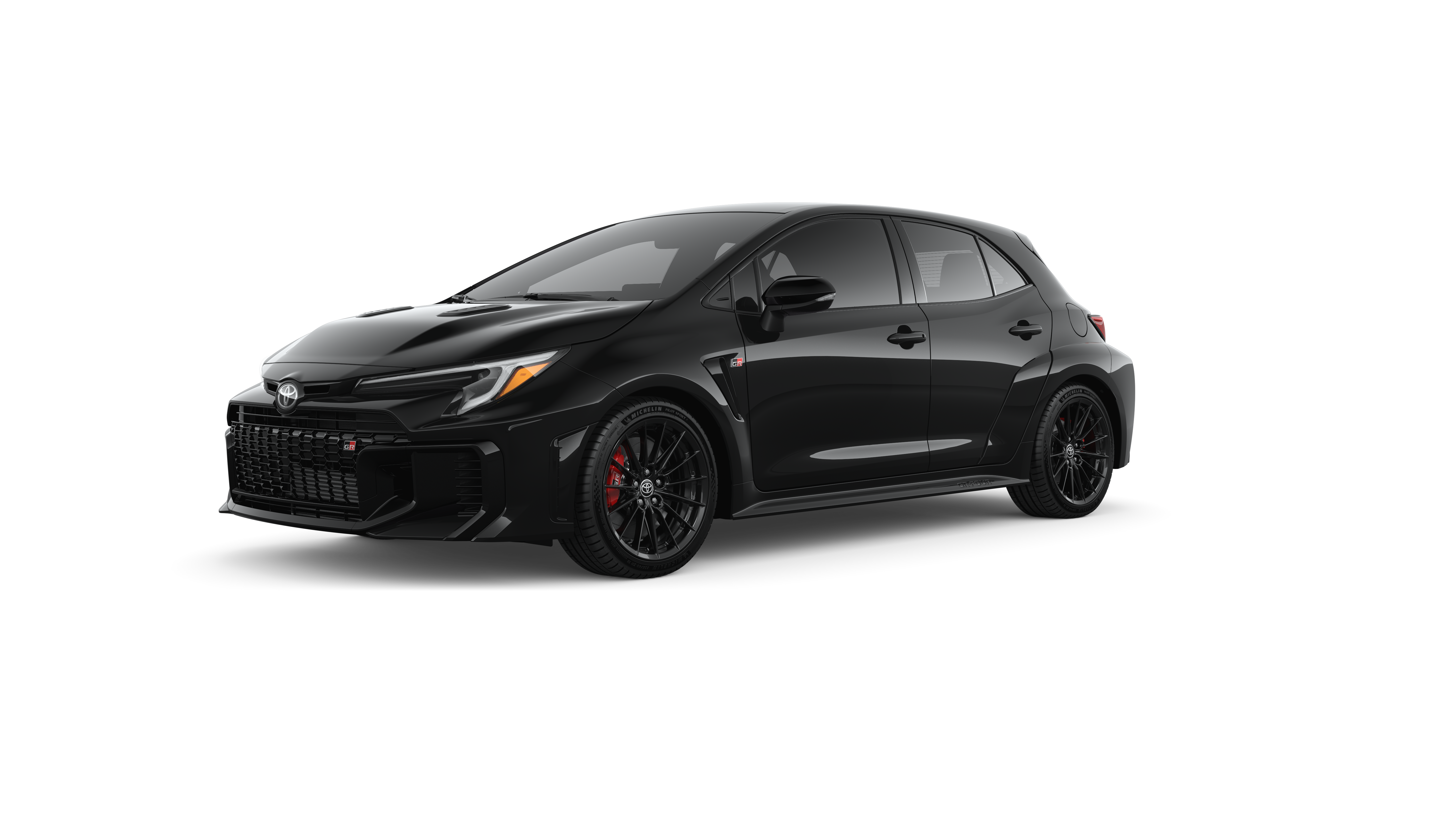 - Gloss-black front grille with GR badge and functional air ducts