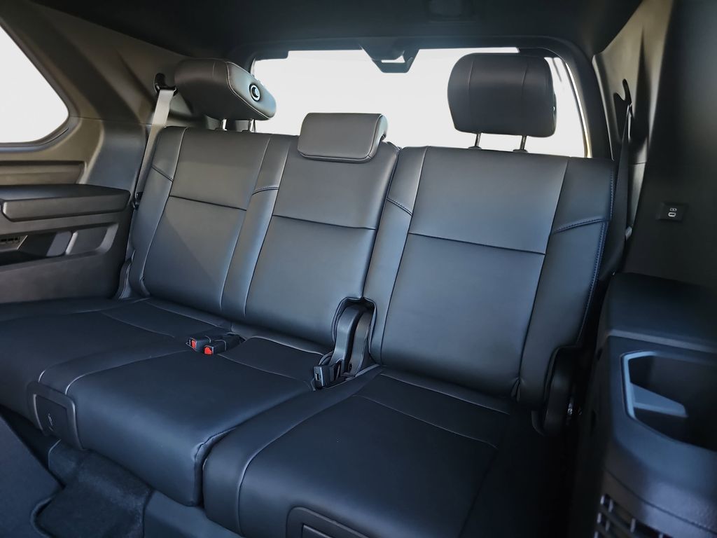 - Reclining, fold-down, fold-up, tumble-forward captain's chairs with center armrests on outboard seats; adjustable headrests; one-touch access to third row