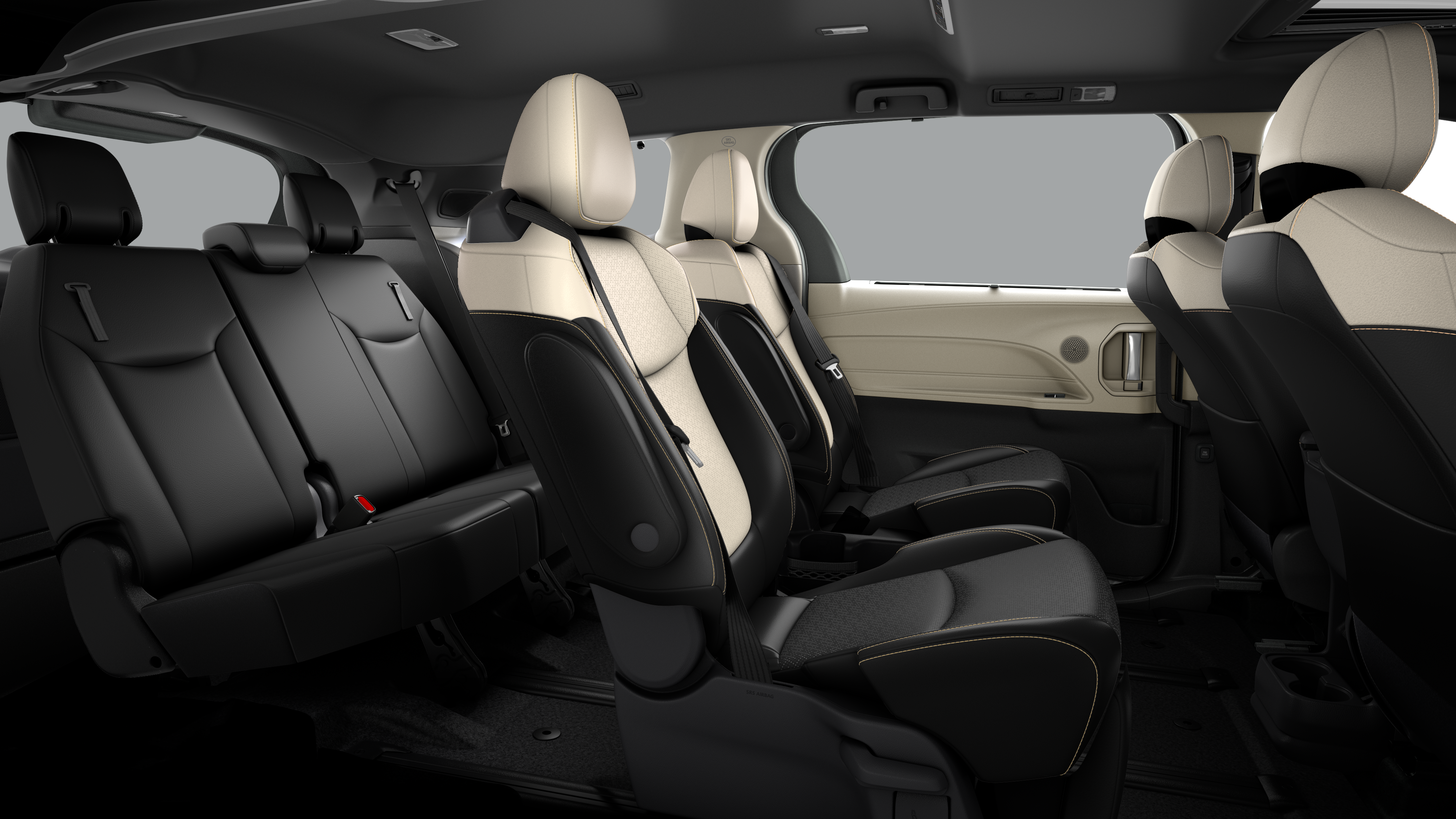 - 7-passenger seating with premium leather-trimmed second-row-seat captain's chairs with super-long-slide feature and ottomans