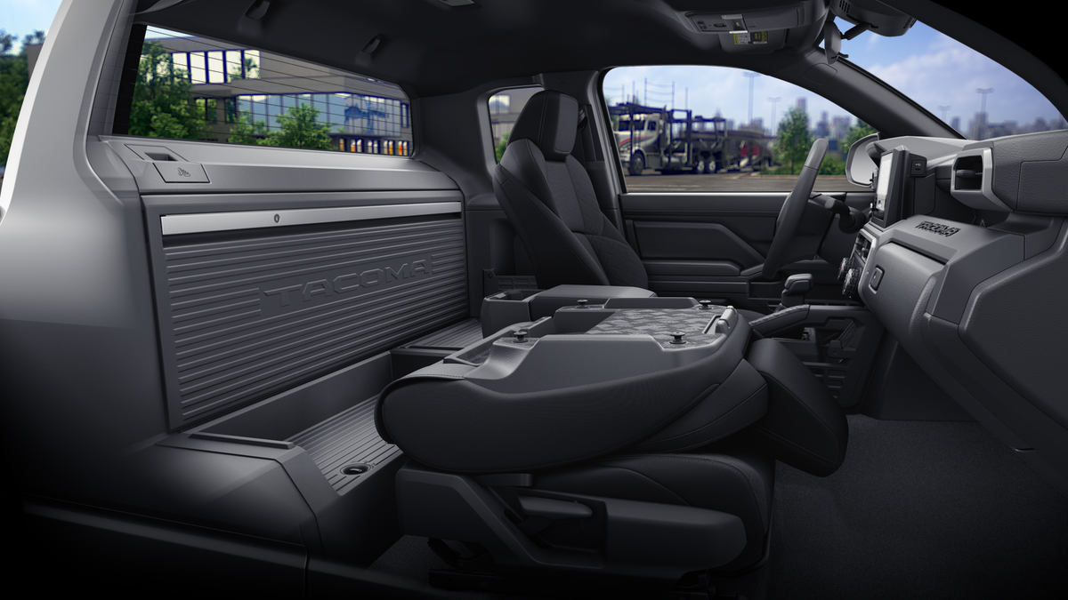 - Fold-flat passenger seat, lockable rear storage panel with integrated pegboard, and lockable deep storage compartment