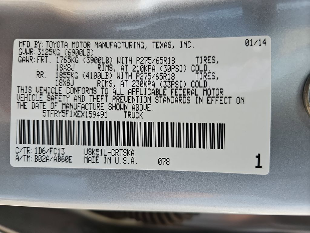 2014 Toyota Tundra SR5 RWD 6-Speed Automatic Electronic with Overdrive Gray i-Force 5.7L V8 DOHC 32V LEV