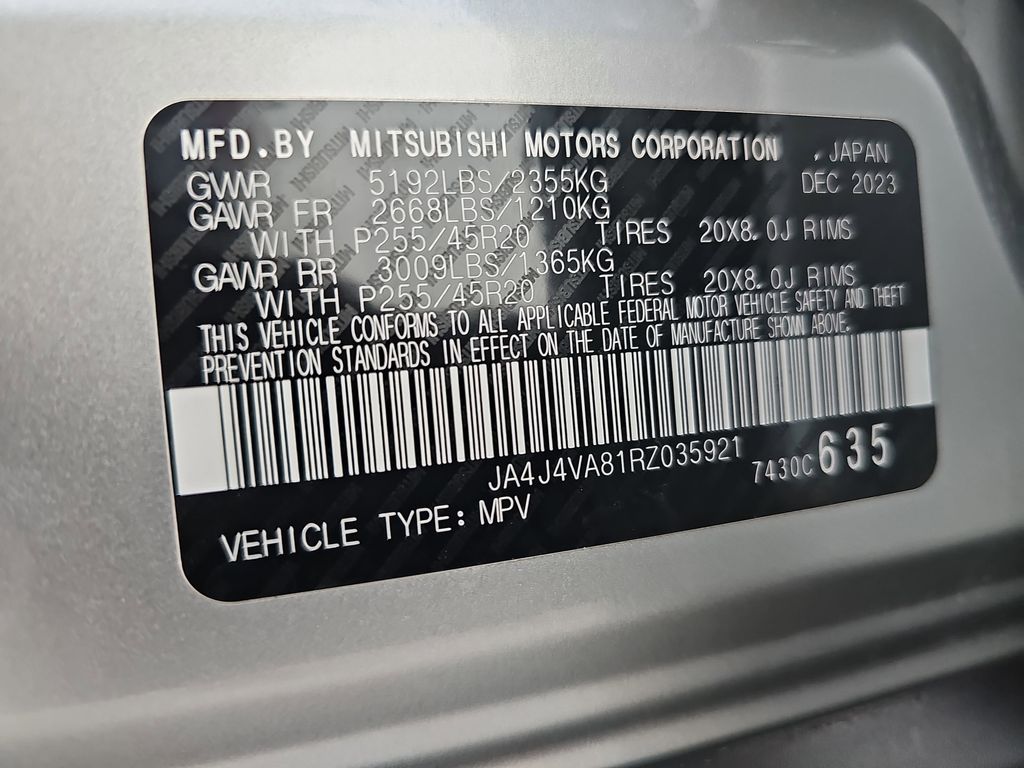 SE, 4WD, 3rd Row Seat, Leather, Heated Seats, Navigation, 360 View Cameras, Smart Key System, Blind Spot Monitor, Premium Audio, Android Auto & Apple CarPlay, Auto High-beam Headlights, Automatic temperature control, Dual front impact airbags, Dual front side impact airbags, Emergency communication system: Mitsubishi Connect w/ 24-month trial, Exterior Parking Camera Rear, Front dual zone A/C, Front fog lights, Fully automatic headlights, Headlight cleaning, Heated front seats, Knee airbag, Leather Shift Knob, Leather steering wheel, Low tire pressure warning, Navigation System, Occupant sensing airbag, Overhead airbag, Power driver seat, Power Liftgate, Radio: AM/FM 9.0" Navigation w/Smartphone Link, Rain sensing wipers, Remote keyless entry, Steering wheel mounted audio controls, Turn signal indicator mirrors, Wheels: 20" Two-Tone Alloy.