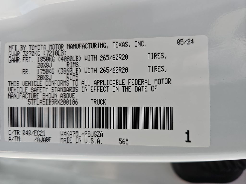 4WD, SR5 Convenience Package, TRD Sport Premium Package, Smart key System, Blind Spot Monitor, Leather Seating, Power Seat, Heated Seats, Bedliner, Tow Package, 32 Gallon Fuel Tank, Apple CarPlay/Android Auto, Automatic temperature control, Blind Spot Monitor, Blind Spot Monitor w/Lane Change Assist, Brake assist, Delay-off headlights, Dual front impact airbags, Dual front side impact airbags, Electronic Stability Control, Emergency communication system: Safety Connect (10-year trial), Front fog lights, Heated Leather Steering Wheel, Knee airbag, Low tire pressure warning, Occupant sensing airbag, Overhead airbag, Parking Support Alert/Brake, Remote keyless entry, SofTex Seat Trim, SR5 Convenience Package, Steering wheel mounted audio controls, TRD Sport Premium Package, Wheels: 20" Black Alloy.